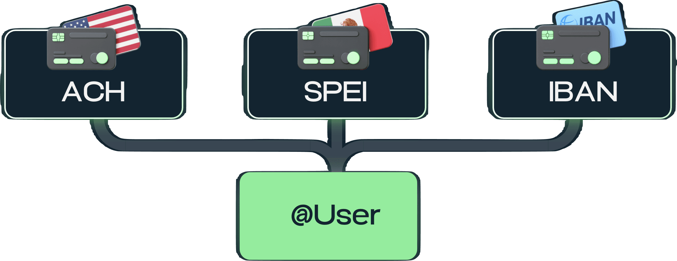 Empower yourself with ACH, IBAN, and SPEI. Send money to anyone in the US, EU, or Mexico.